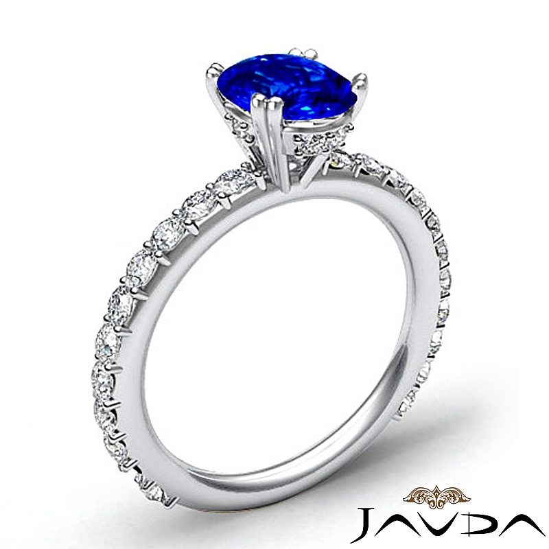 Double Prong Set Side Stone style Engagement Ring, center is Oval shape D Block Tanzanite Report by , Color & clarity, Made in Platinum 950 (1.45 ct. tw.)