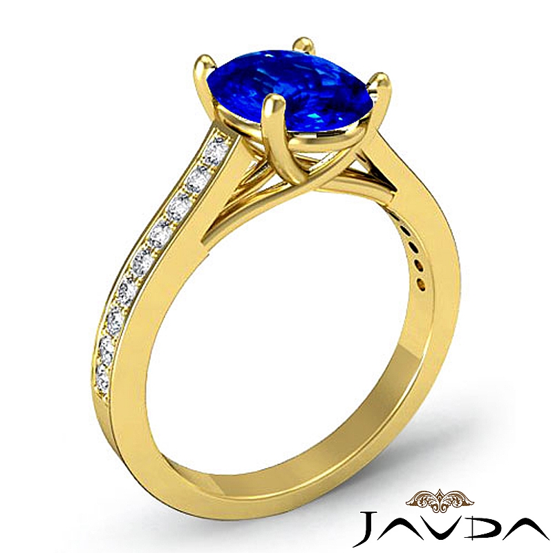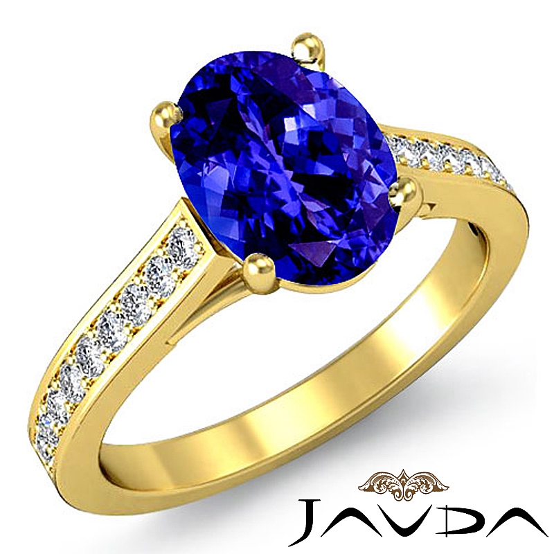 Trellis Style Pave style Engagement Ring, center is Oval shape D Block Tanzanite Report by , Color & clarity, Made in 18k Yellow Gold (1.3 ct. tw.)