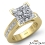 1.33Ct Channel Princess Sidestone Semi Mount Diamond Engagement Ring 14k Yellow Gold.