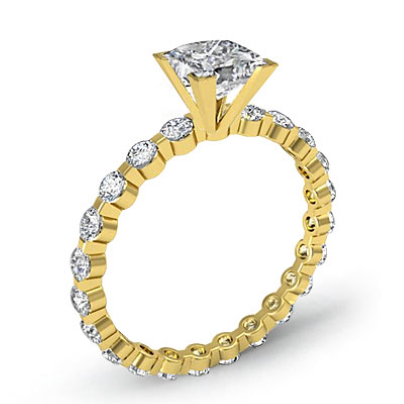 Bar Setting Eternity style Engagement Ring, center is Princess shape Diamond Report by GIA, J Color & VS1 clarity, Made in 14k Yellow Gold (1.41 ct. tw.)