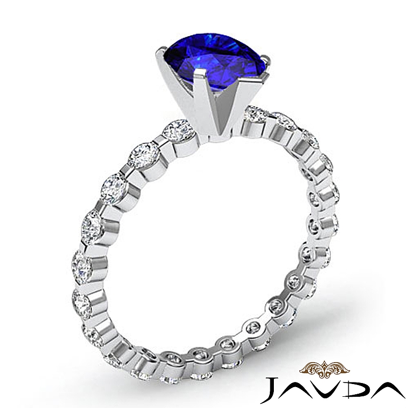 Bar Setting Eternity style Engagement Ring, center is Pear shape D Block Tanzanite Report by , Color & clarity, Made in 18k White Gold (1.4 ct. tw.)
