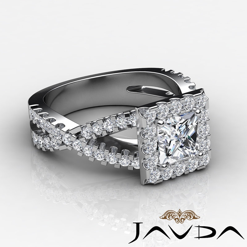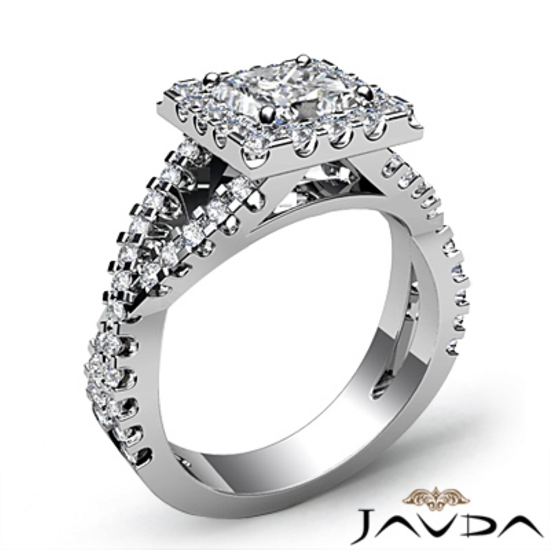 Diamond Engagement Ring Halo Prong Setting Platinum 950 Round Semi Mount 0.9Ct.