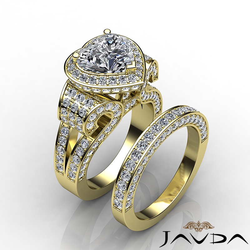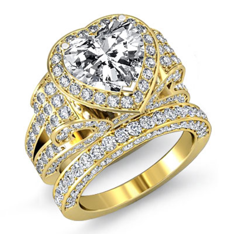 3.9Ct Diamond Engagement Ring Heart Halo Pave Setting Bridal Set 18k Yellow Gold.