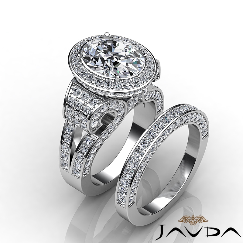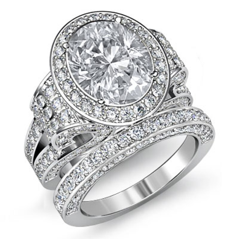 3.8Ct Diamond Engagement Semi Mount Ring Oval Pave Bridal Sets 18k White Gold.