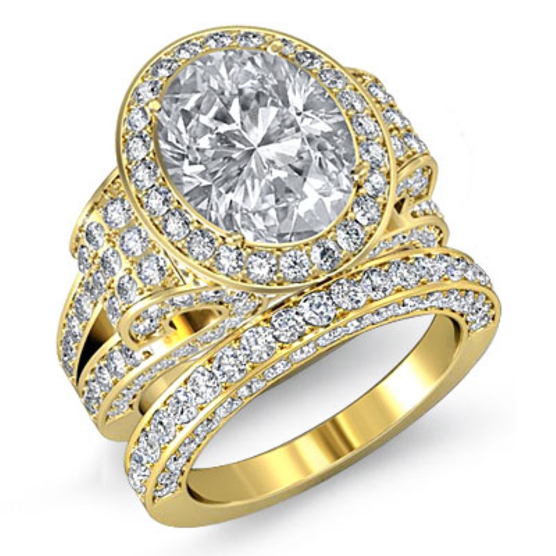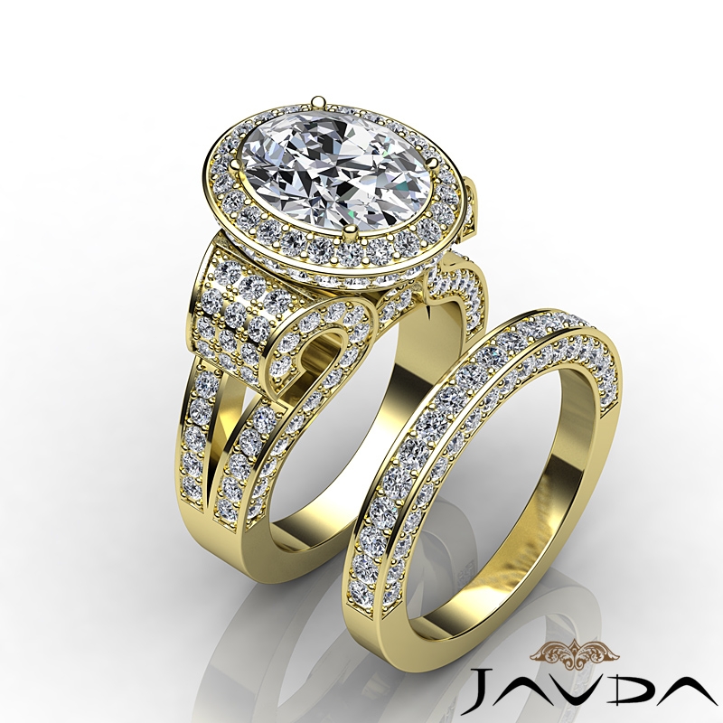 3.8Ct Diamond Engagement Semi Mount Ring Oval Pave Bridal Sets  18k Yellow Gold - javda.com