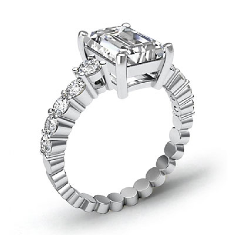 Prong Set Classic Side Stone style Engagement Ring, center is Emerald shape Diamond Report by GIA, D Color & SI1 clarity, Made in 18k White Gold (1.32 ct. tw.)