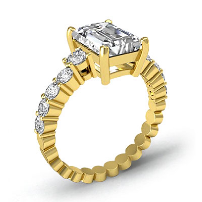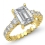 Prong Set Classic Side Stone style Engagement Ring, center is Emerald shape Diamond Report by GIA, D Color & SI1 clarity, Made in 18k Yellow Gold (1.32 ct. tw.)