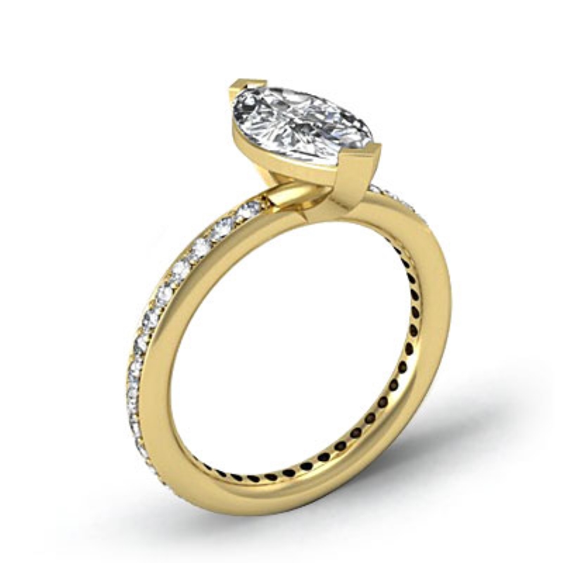 Eternity Classic Sidestone style Engagement Ring, center is Marquise shape Diamond Report by GIA, I Color & VVS2 clarity, Made in 14k Yellow Gold (1.02 ct. tw.)