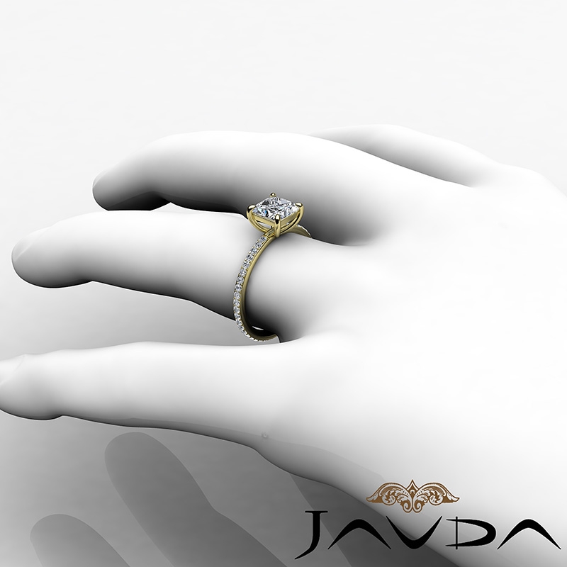 Eternity Classic Sidestone style Engagement Ring, center is Princess shape Diamond Report by GIA, H Color & VVS2 clarity, Made in 14k Yellow Gold (1.02 ct. tw.)