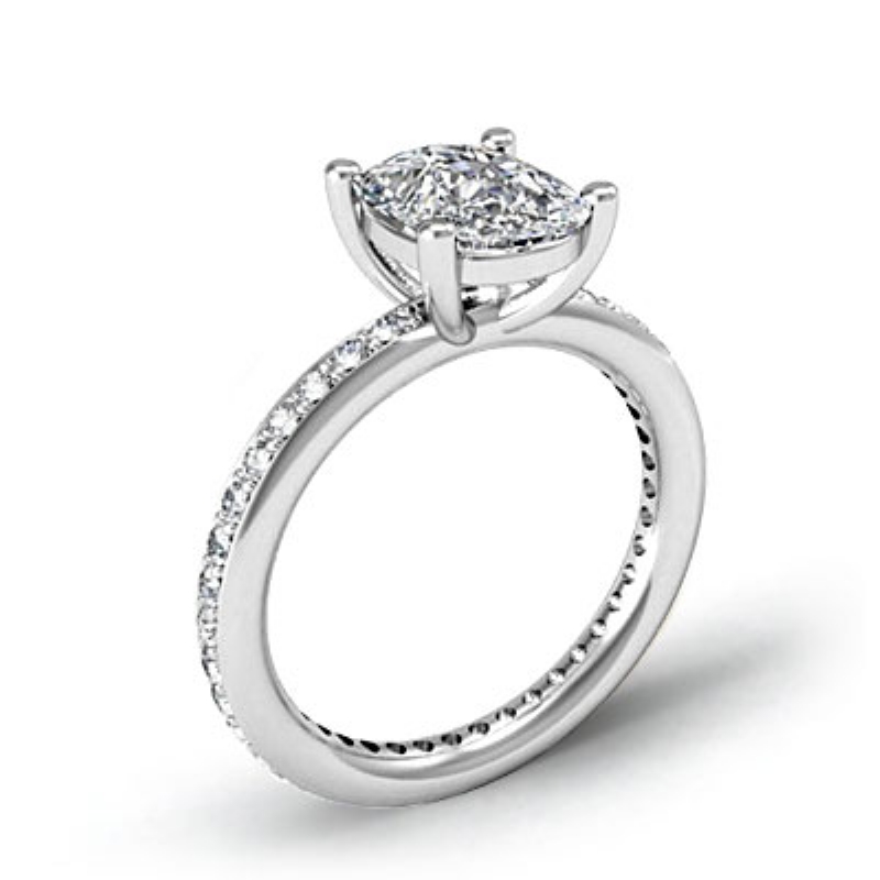 Eternity Classic Sidestone style Engagement Ring, center is Cushion shape Diamond Report by GIA, H Color & SI1 clarity, Made in 18k White Gold (1.01 ct. tw.)