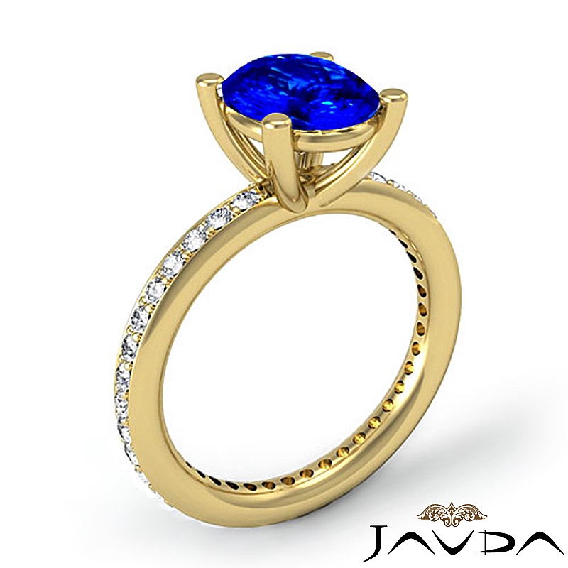 Eternity Classic Sidestone style Engagement Ring, center is Oval shape D Block Tanzanite Report by , Color & clarity, Made in 18k Yellow Gold (1.5 ct. tw.)