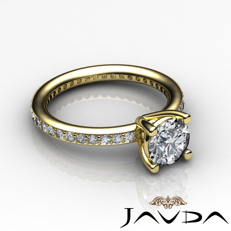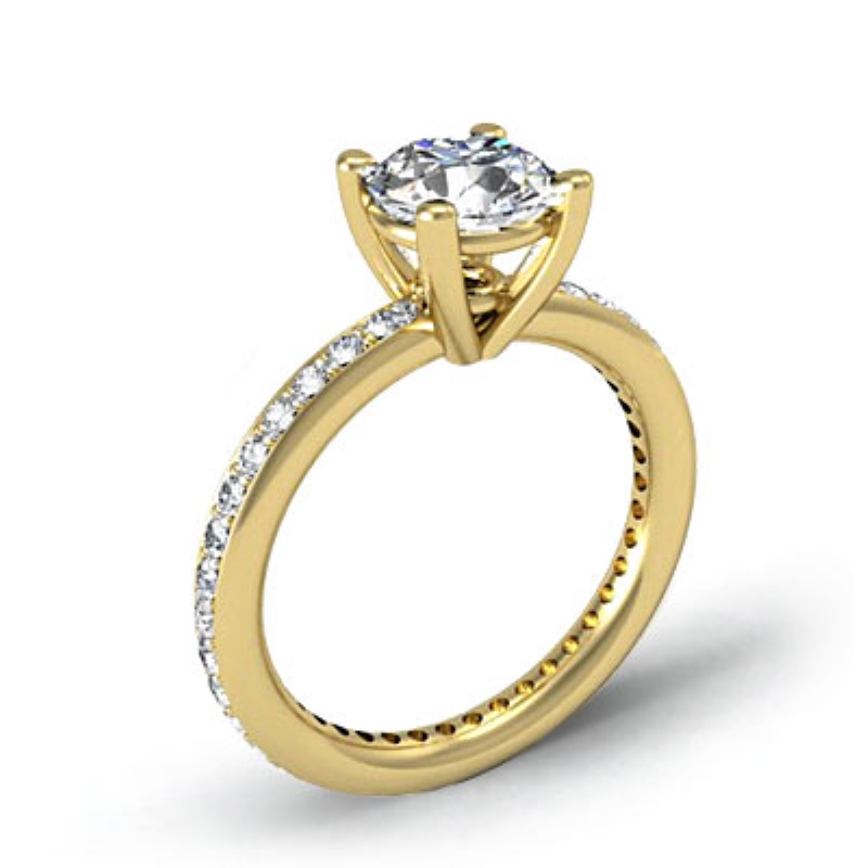 Eternity Classic Sidestone style Engagement Ring, center is Round shape Diamond Report by GIA, E Color & VS2 clarity, Made in 18k Yellow Gold (1 ct. tw.)