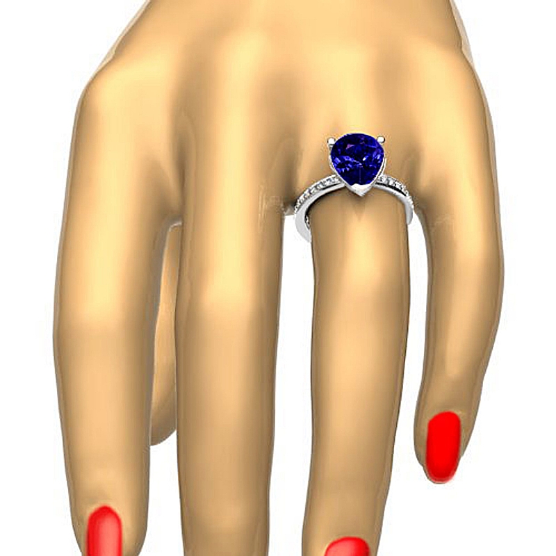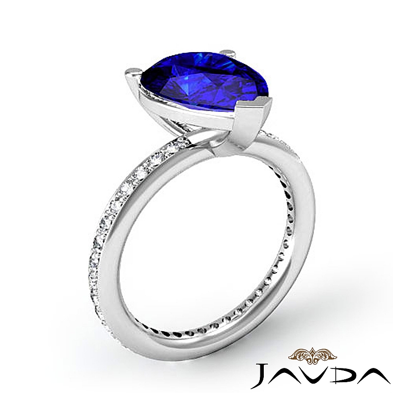 Eternity Classic Sidestone style Engagement Ring, center is Pear shape D Block Tanzanite Report by , Color & clarity, Made in Platinum 950 (1.5 ct. tw.)