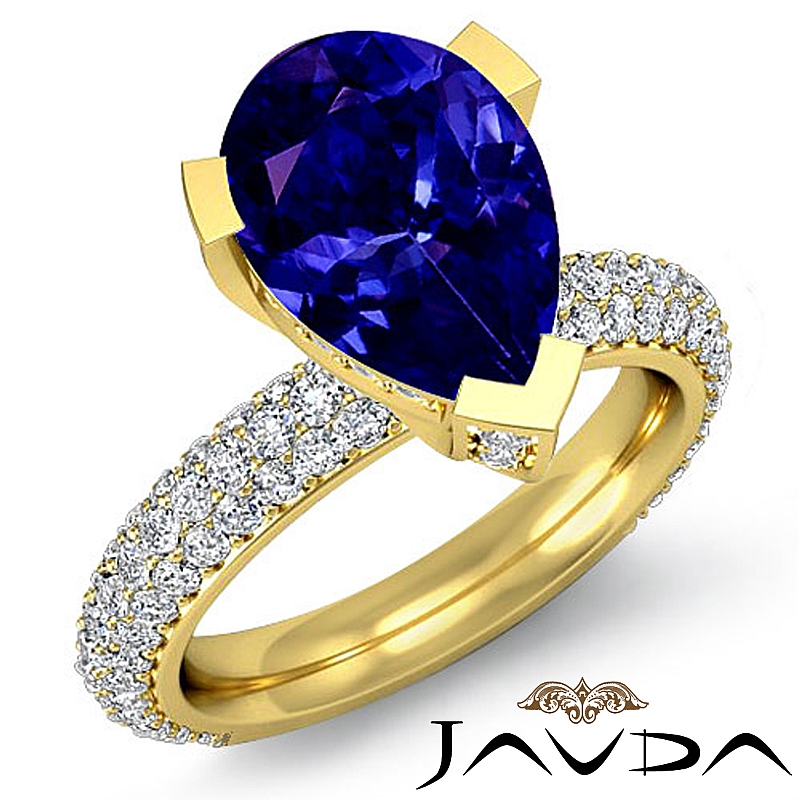 style Engagement Ring, center is Pear shape D Block Tanzanite Report by , Color & clarity, Made in 14k Yellow Gold (2.72 ct. tw.)