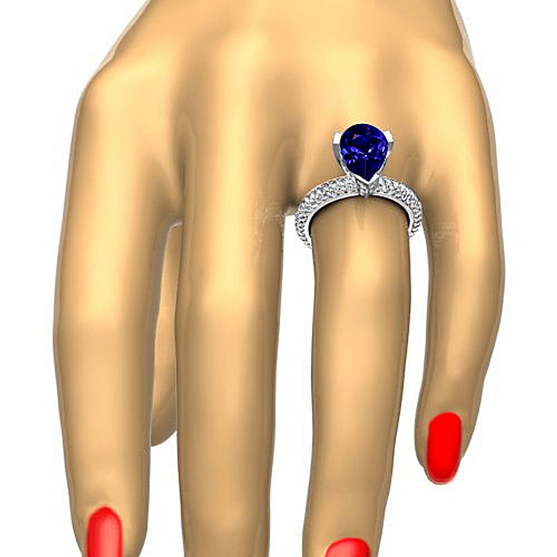 style Engagement Ring, center is Pear shape D Block Tanzanite Report by , Color & clarity, Made in Platinum 950 (2.72 ct. tw.)