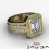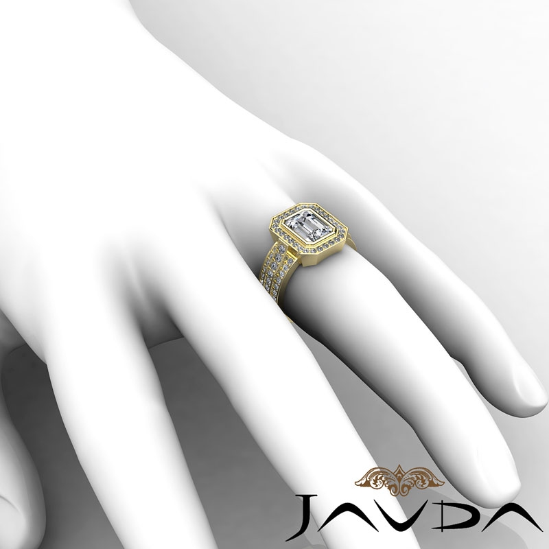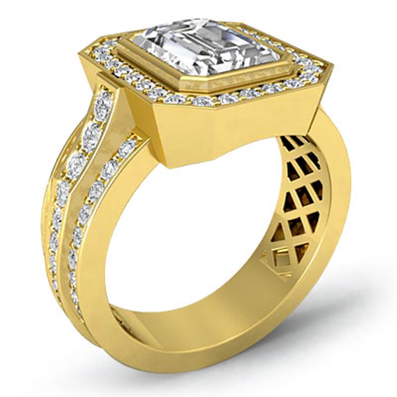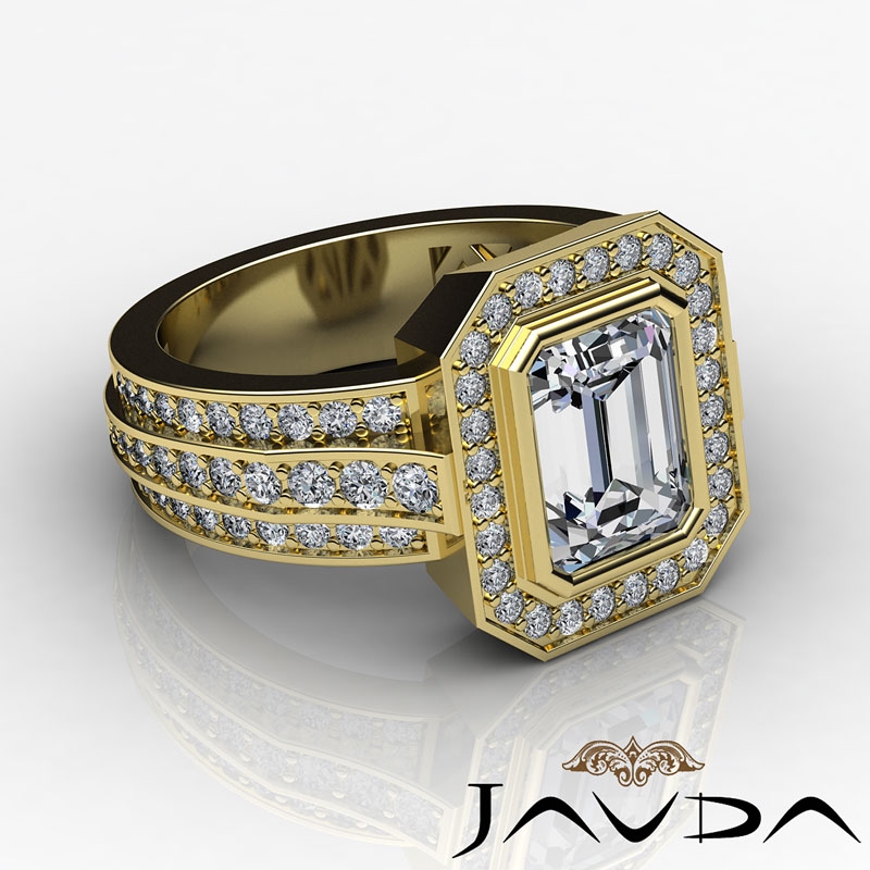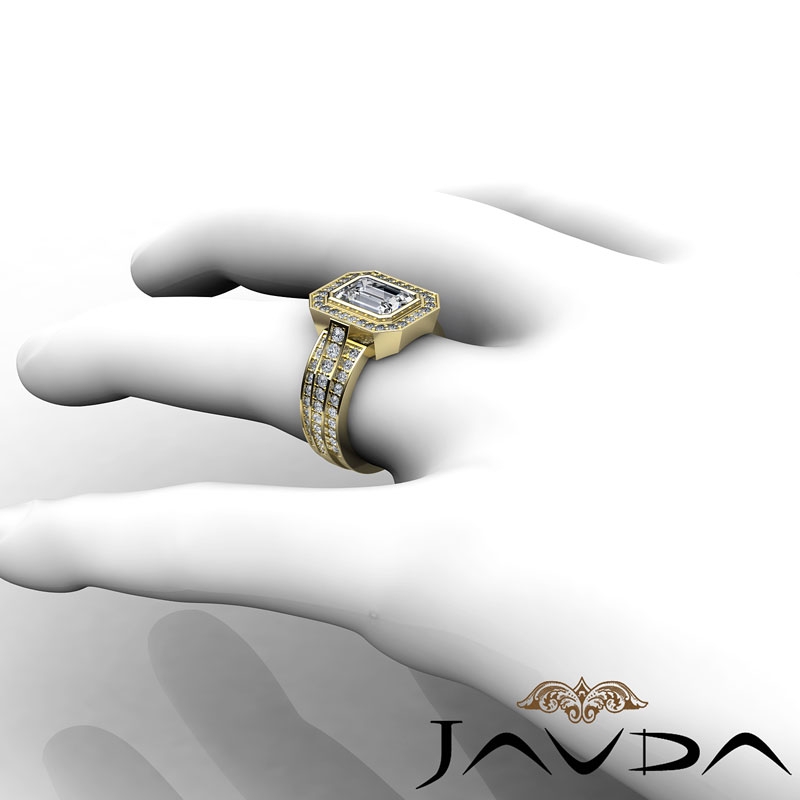 3 Row Shank Bezel Halo Pave style Engagement Ring, center is Emerald shape Diamond Report by GIA, H Color & VVS1 clarity, Made in 14k Yellow Gold (2.12 ct. tw.)