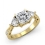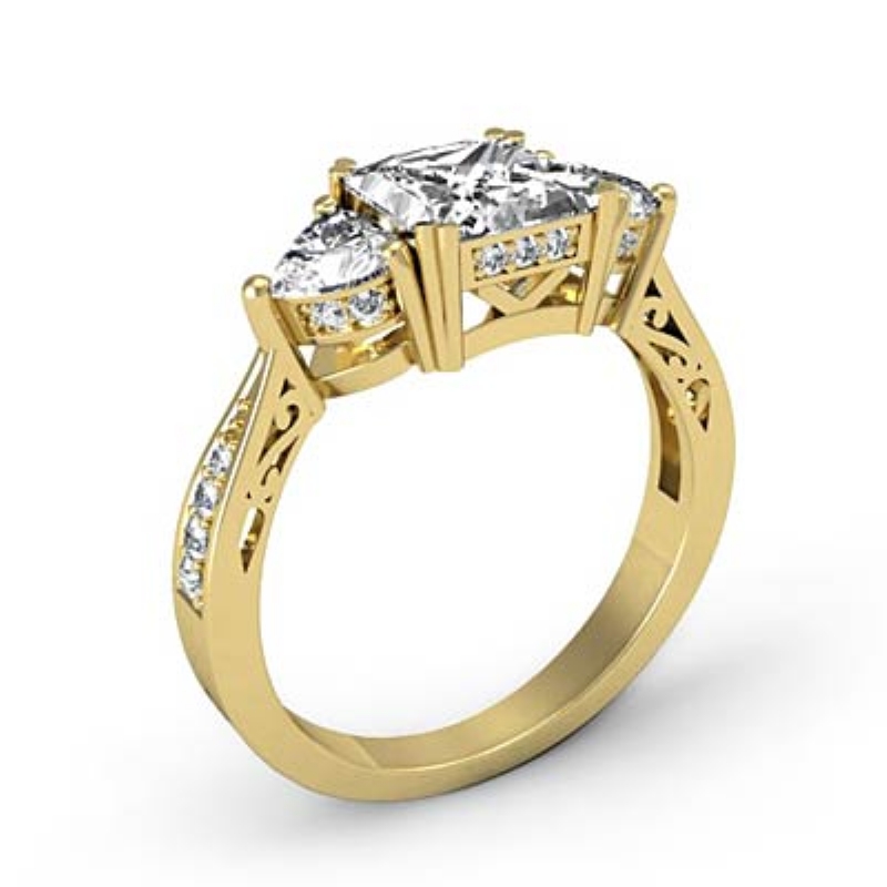 3 Stone Side Heart Diamond Engagement Ring Princess Semi Mount 18k Yellow Gold 0.82Ct - javda.com