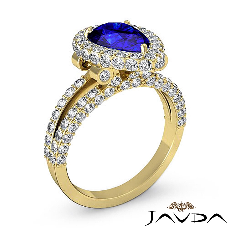 Circa Halo Split Shank style Engagement Ring, center is Pear shape D Block Tanzanite Report by , Color & clarity, Made in 14k Yellow Gold (2.52 ct. tw.)