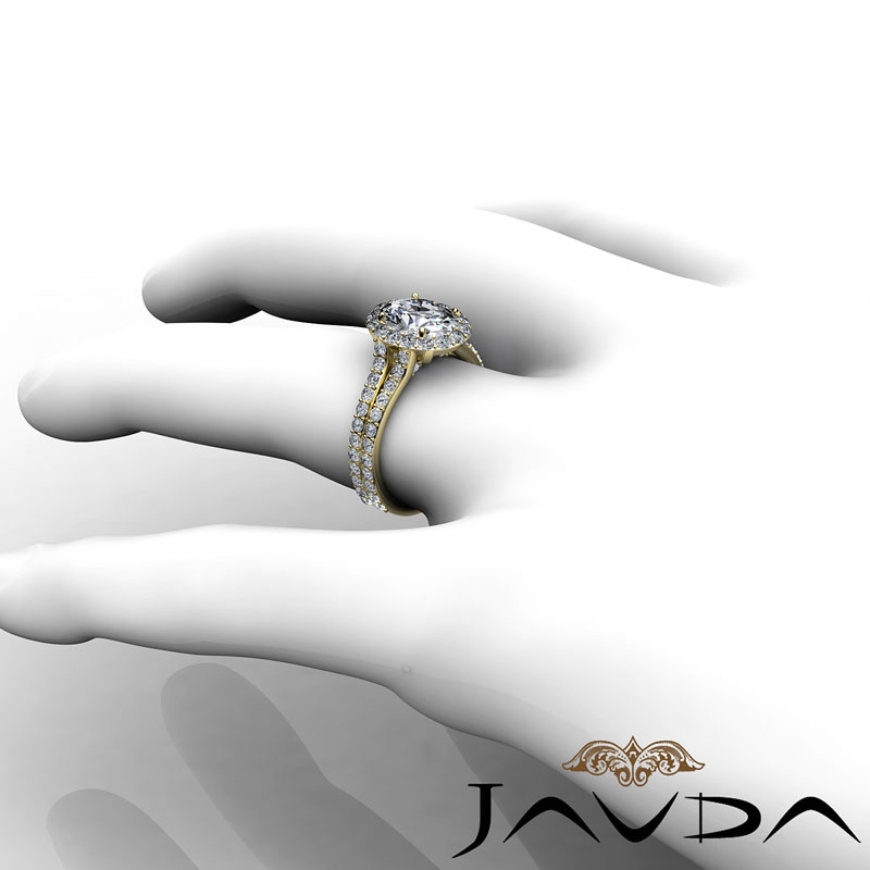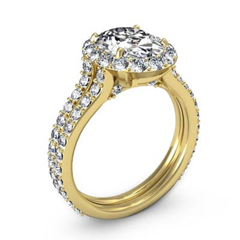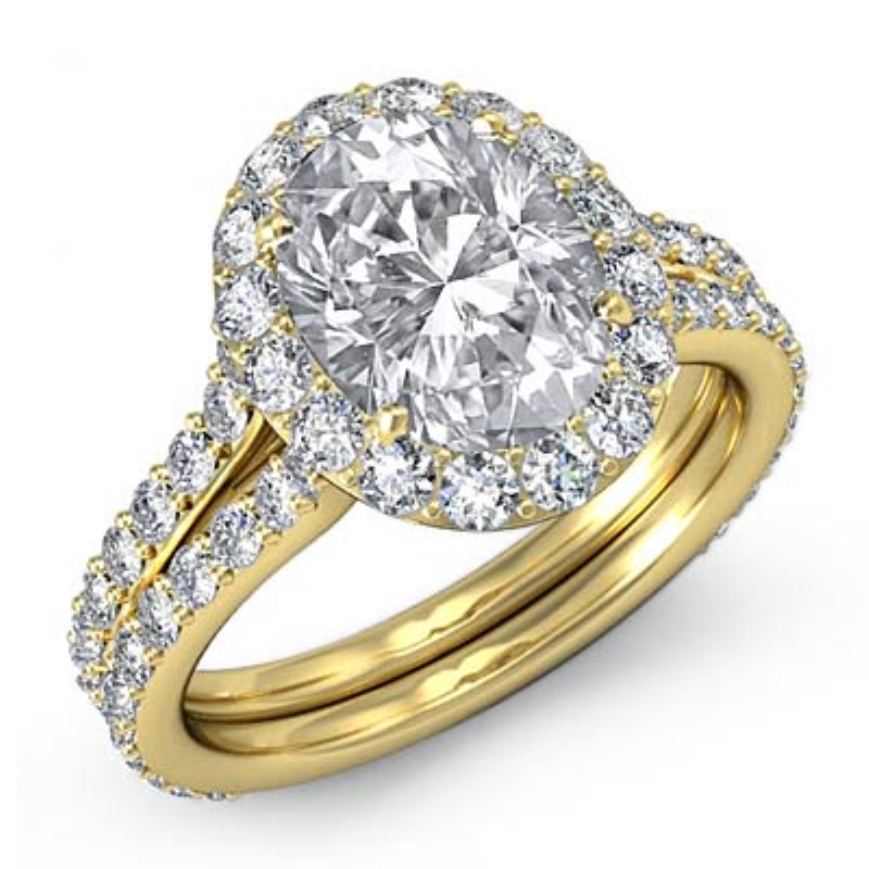 Modern Petite Halo Pave style Engagement Ring, center is Oval shape Diamond Report by IGI, F Color & VS1 clarity, Made in 18k Yellow Gold (2.26 ct. tw.)