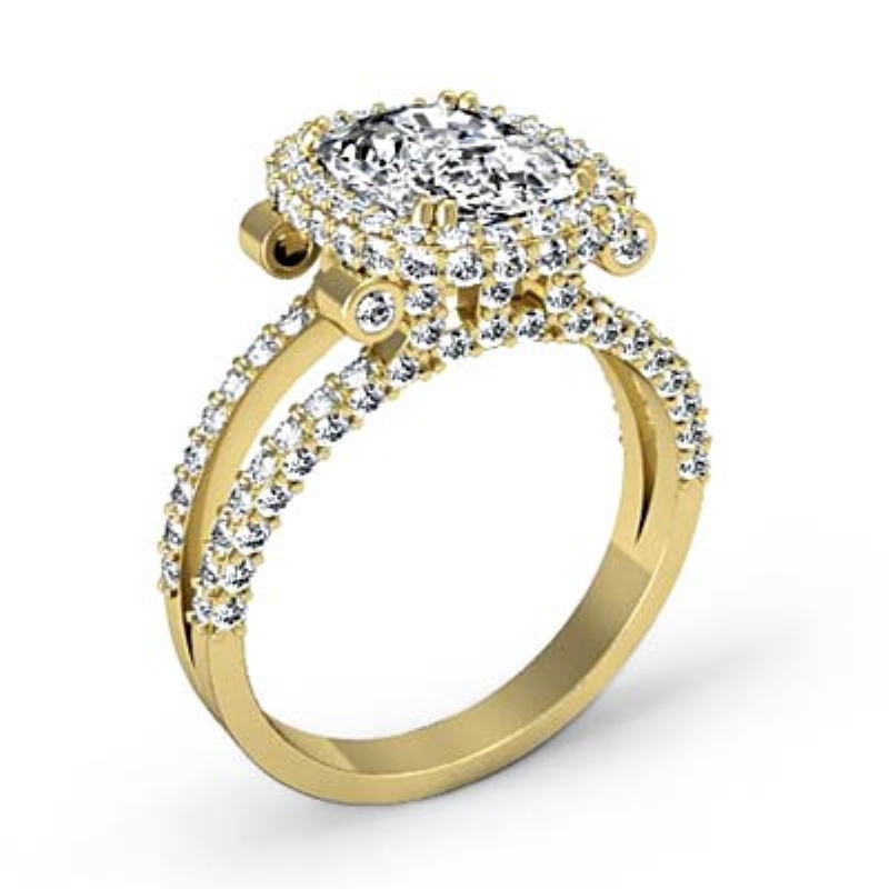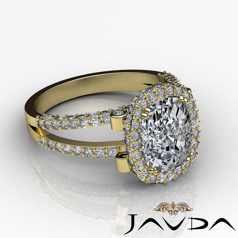 Split-Shank Pave Circa Halo style Engagement Ring, center is Cushion shape Diamond Report by GIA, I Color & VVS1 clarity, Made in 14k Yellow Gold (2.1 ct. tw.)