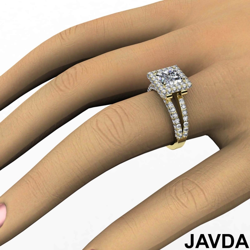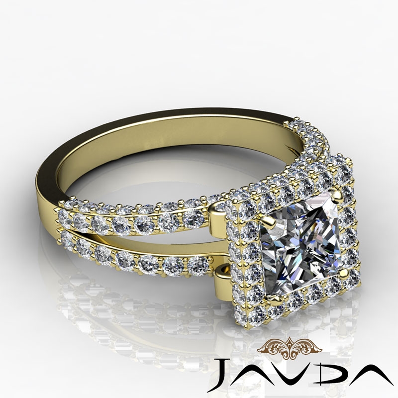 1.56Ct Diamond Engagement Ring Princess Semi Mount Halo Setting 14k Yellow Gold.