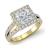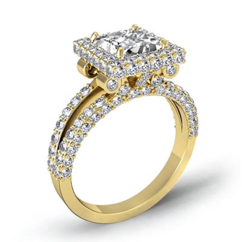 Split-Shank Pave Circa Halo style Engagement Ring, center is Princess shape Diamond Report by GIA, E Color & VS2 clarity, Made in 14k Yellow Gold (2.09 ct. tw.)