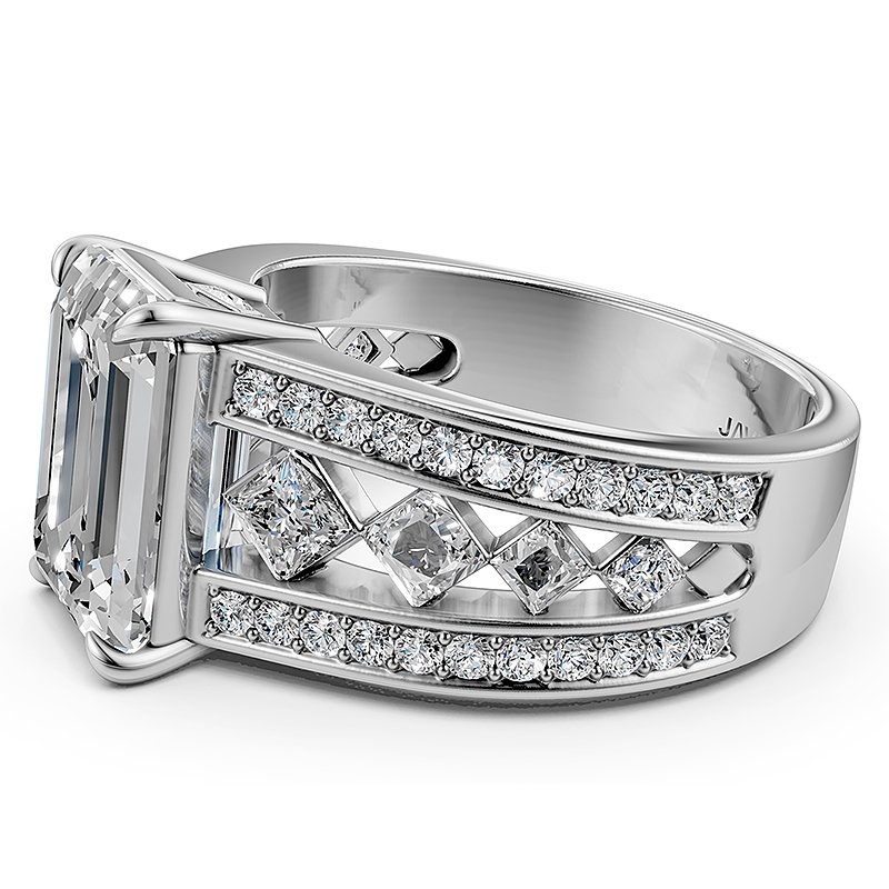 style Engagement Ring, center is Emerald shape Diamond Report by GIA, D Color & VVS1 clarity, Made in Platinum 950 (2.05 ct. tw.)