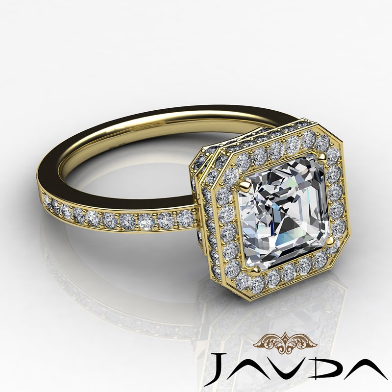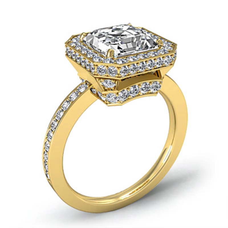 Crown Halo Petite Pave Set style Engagement Ring, center is Asscher shape Diamond Report by IGI, D Color & VS1 clarity, Made in 14k Yellow Gold (2.29 ct. tw.)