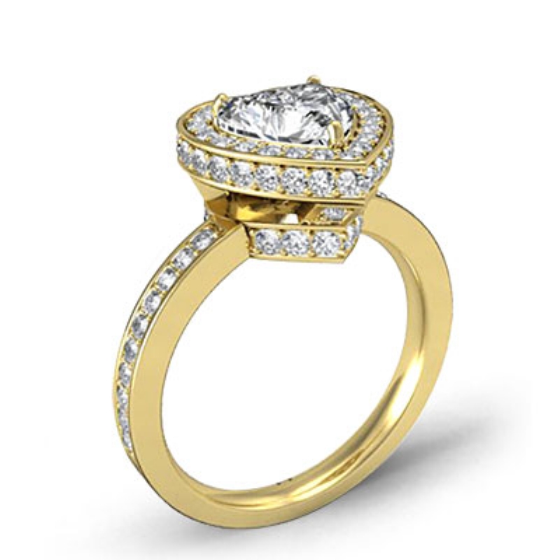 Crown Halo Petite Pave Set style Engagement Ring, center is Heart shape Diamond Report by IGI, D Color & VS1 clarity, Made in 14k Yellow Gold (2.07 ct. tw.)