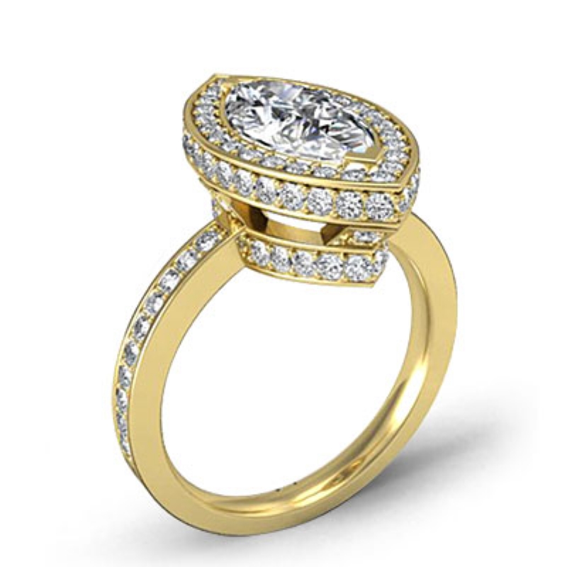 Crown Halo Petite Pave Set style Engagement Ring, center is Marquise shape Diamond Report by GIA, J Color & VS2 clarity, Made in 18k Yellow Gold (1.4 ct. tw.)
