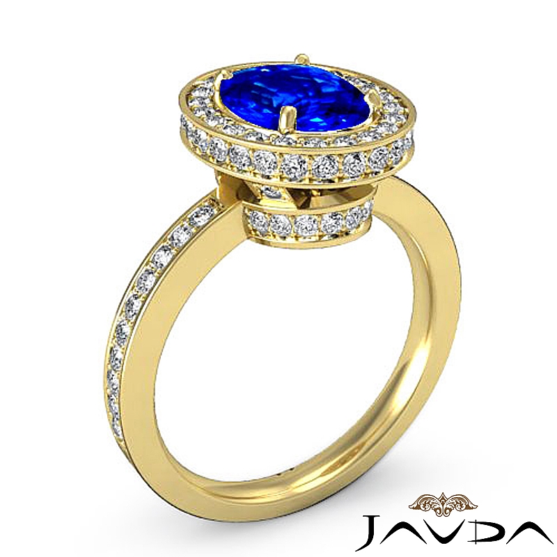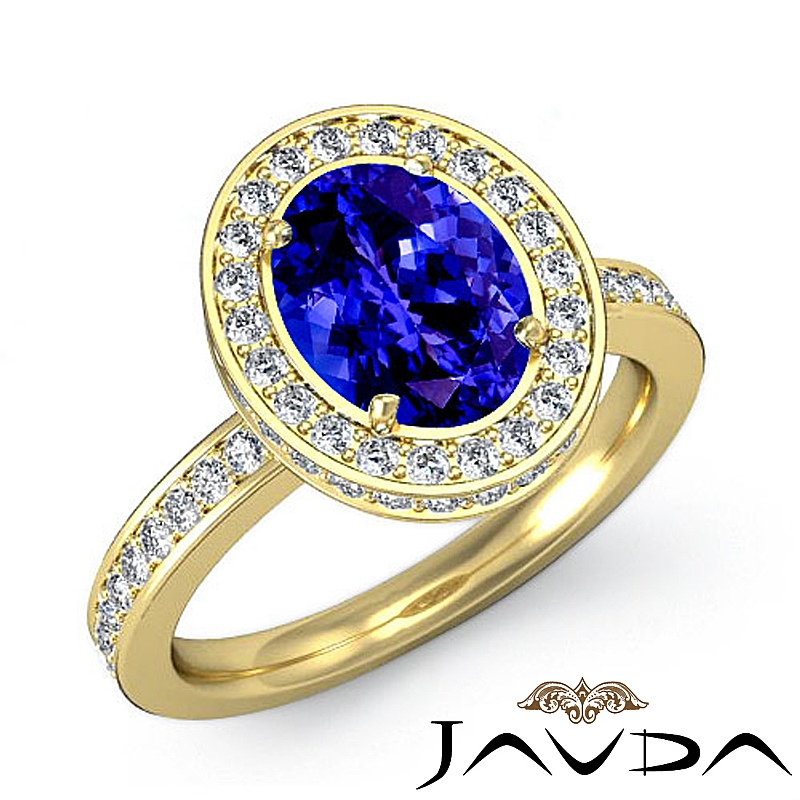 Crown Halo Petite Pave Set style Engagement Ring, center is Oval shape D Block Tanzanite Report by , Color & clarity, Made in 18k Yellow Gold (1.8 ct. tw.)
