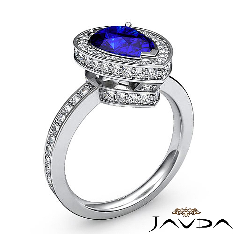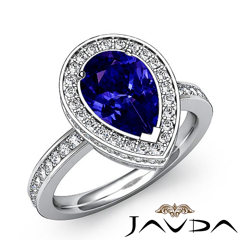 Crown Halo Petite Pave Set style Engagement Ring, center is Pear shape D Block Tanzanite Report by , Color & clarity, Made in Platinum 950 (1.8 ct. tw.)