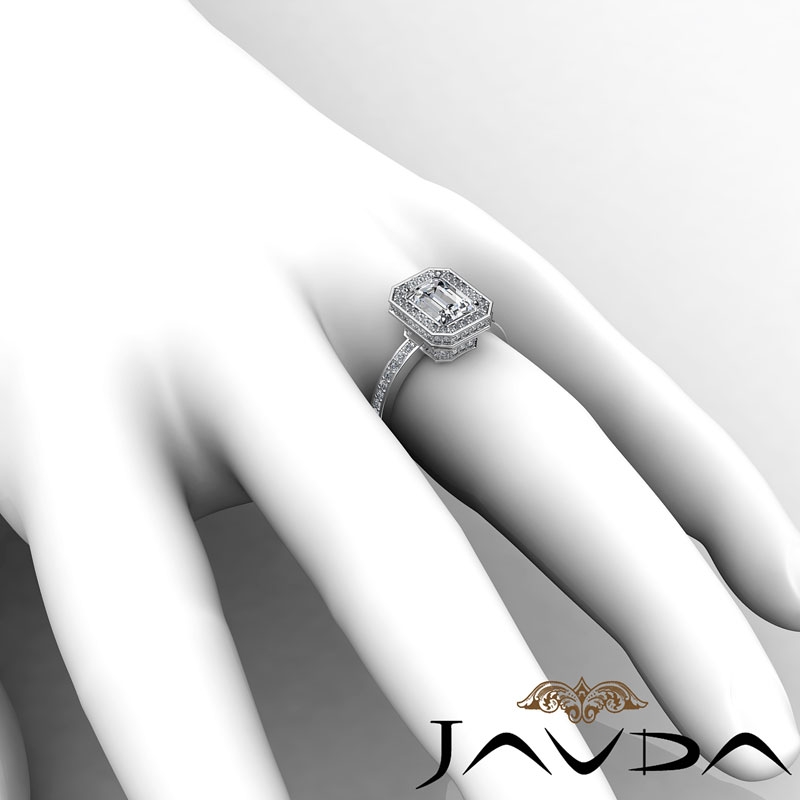 0.89Ct Halo Pave Setting Diamond Engagement Ring Emerald Semi Mount 14k White Gold.