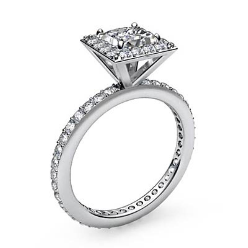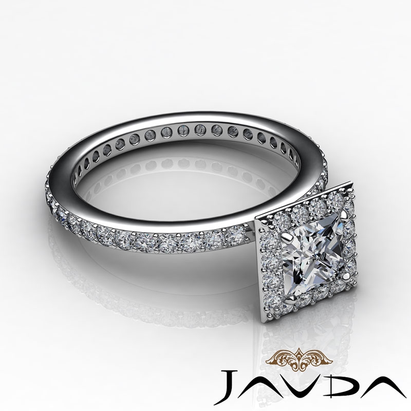 Halo Pave Setting Eternity style Engagement Ring, center is Princess shape Diamond Report by GIA, J Color & VS1 clarity, Made in Platinum 950 (1.48 ct. tw.)