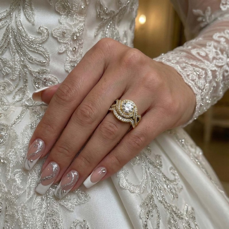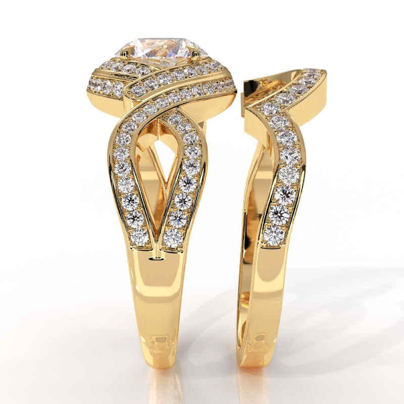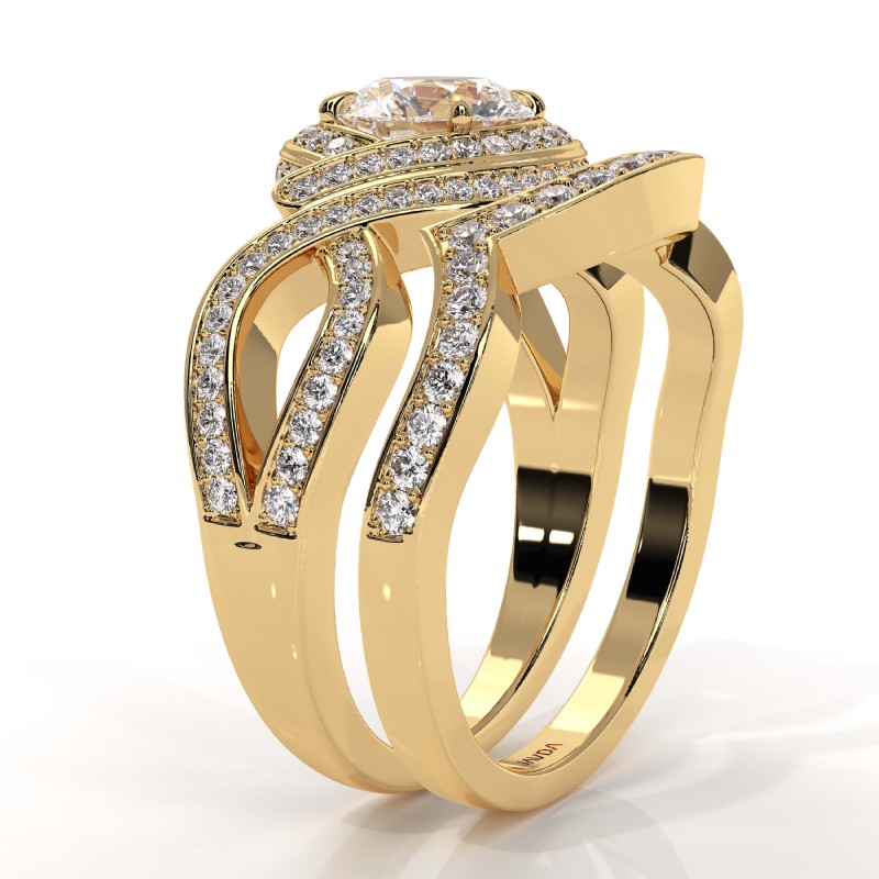 1.5Ct Diamond Bridal Set Curve Shank Ring Round Semi Mount 18k Yellow Gold.