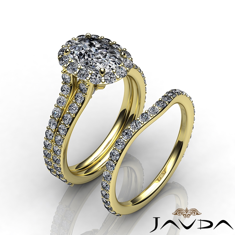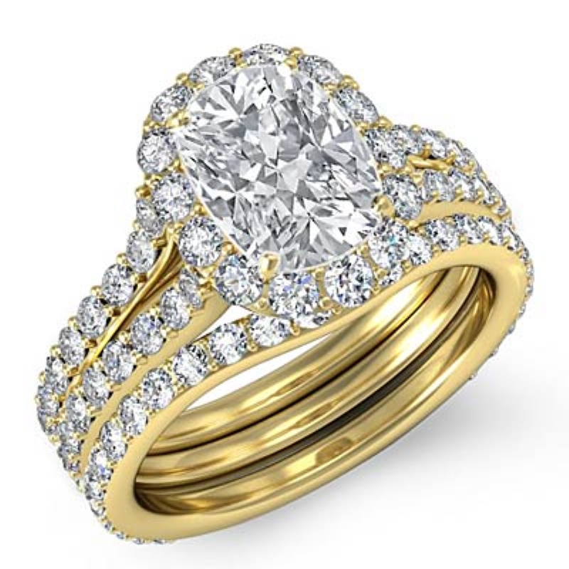 Halo Pave Wedding Set style Engagement Ring, center is Cushion shape Diamond Report by GIA, E Color & VVS2 clarity, Made in 18k Yellow Gold (2.8 ct. tw.)