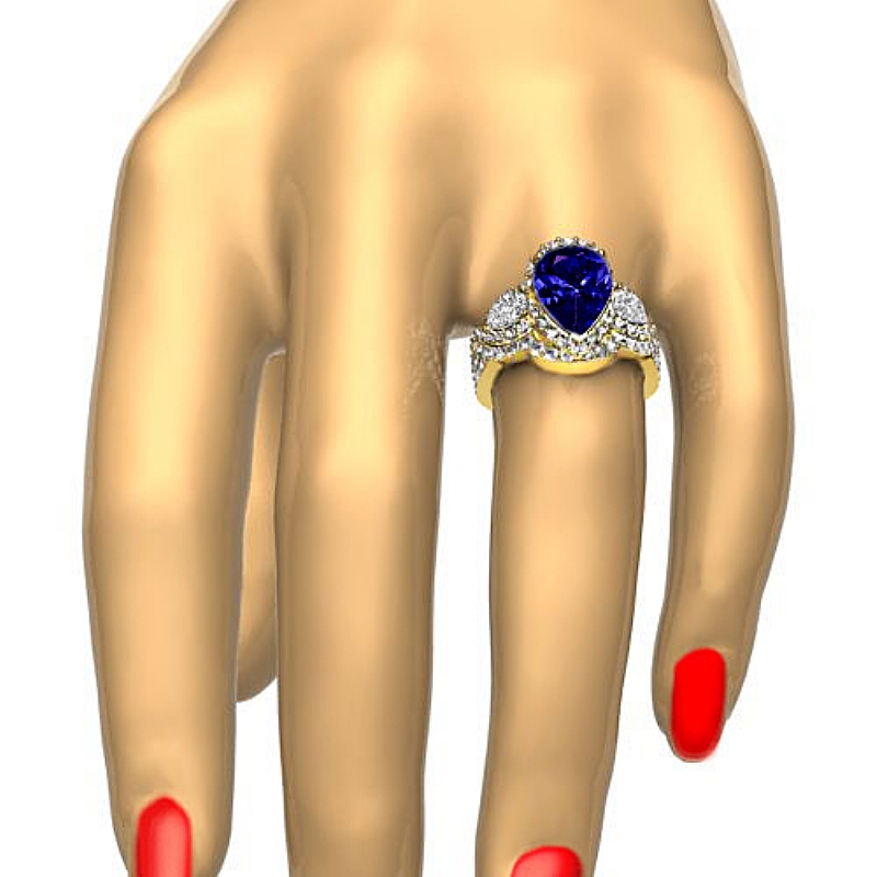 pear d block tanzanite engagement ring report by , color & clarity, 18k yellow gold (3.08 ct. tw.)