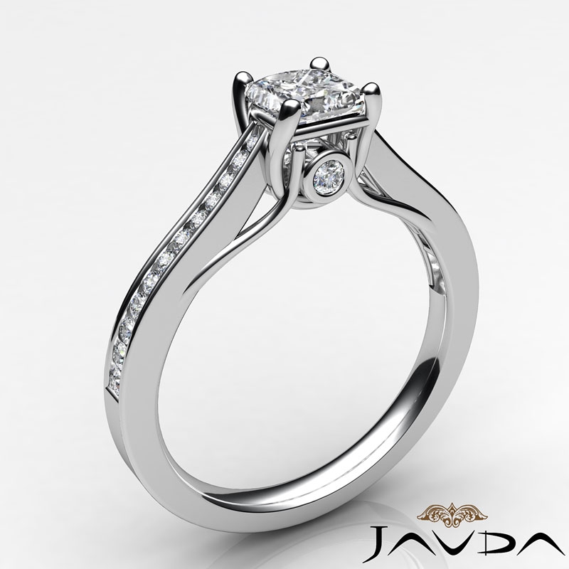4 Prong Trellis Channel Set style Engagement Ring, center is Princess shape Diamond Report by GIA, H Color & VVS2 clarity, Made in 14k White Gold (1.07 ct. tw.)