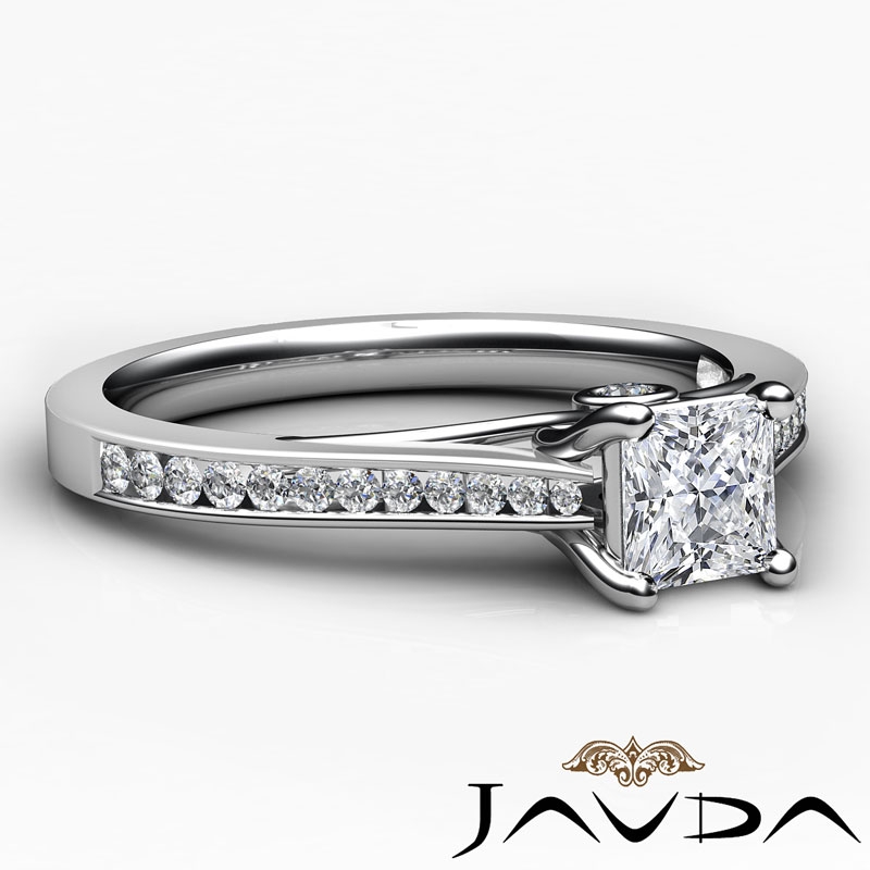 Channel Setting Diamond Engagement Princess Semi Mount Ring 14k White Gold 0.55Ct.