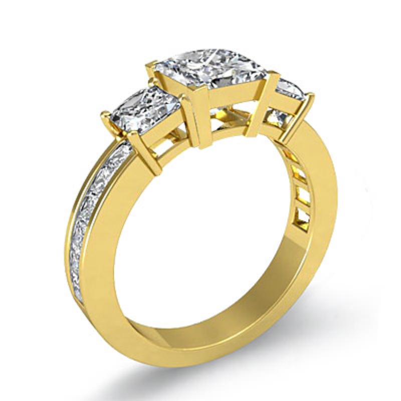 3Stone Diamond Engagement Ring 14k Yellow Gold Princess Round Setting 1.1Ct.