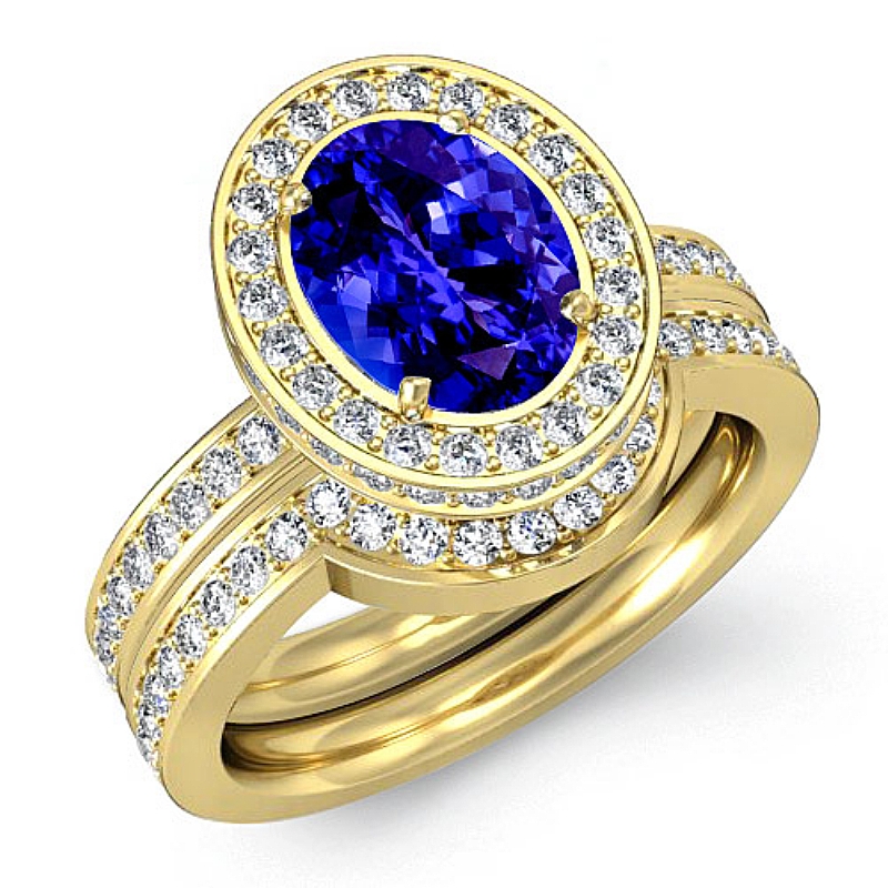 Circa Style Halo Bridal Set style Engagement Ring, center is Oval shape D Block Tanzanite Report by , Color & clarity, Made in 14k Yellow Gold (2.2 ct. tw.)