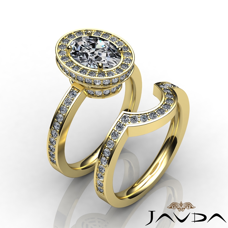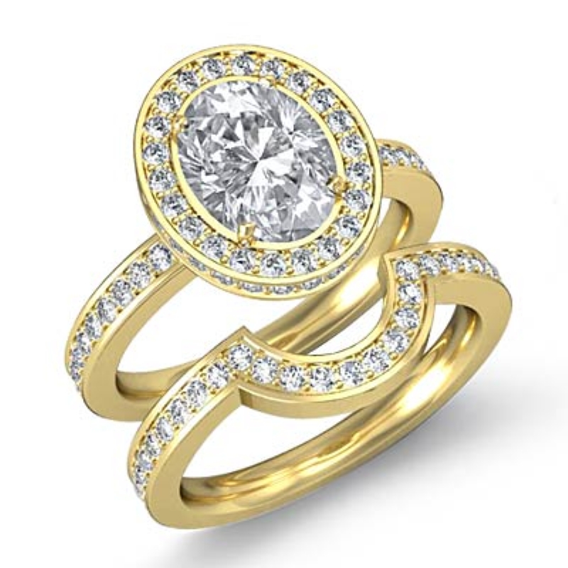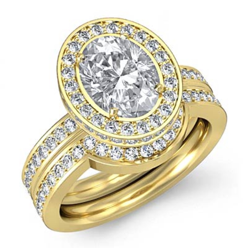 Circa Style Halo Bridal Set style Engagement Ring, center is Oval shape Diamond Report by GIA, F Color & SI2 clarity, Made in 14k Yellow Gold (2.1 ct. tw.)