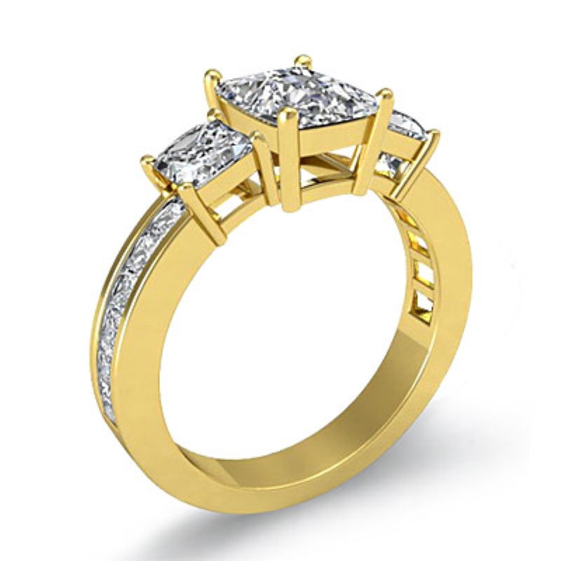 3Stone Diamond Engagement Ring 18k Yellow Gold Princess Round Setting 1.1Ct.