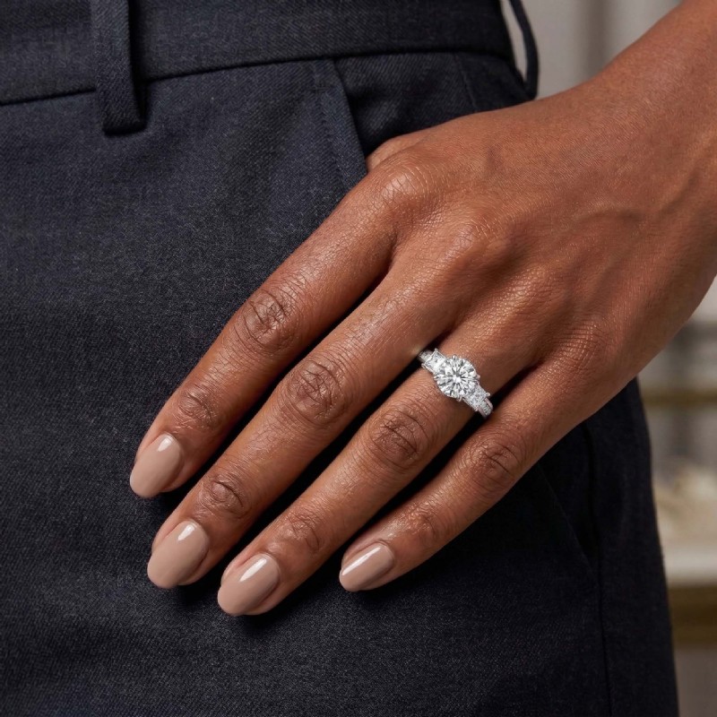 style Engagement Ring, center is Round shape Diamond Report by GIA, E Color & VS1 clarity, Made in Platinum 950 (1.6 ct. tw.)