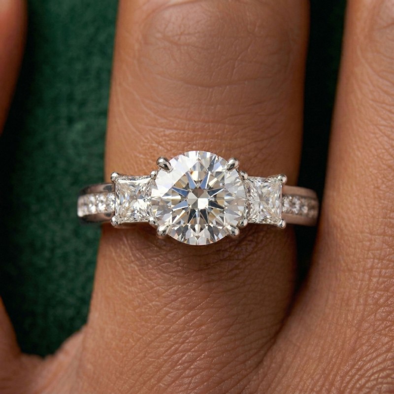 3Stone Diamond Engagement Ring Platinum 950 Princess Round Setting 1.1Ct.