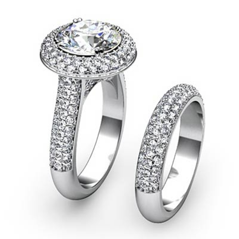 2.5Ct Diamond Engagement Pave Ring Round Semi Mount Bridal Set 18k White Gold.