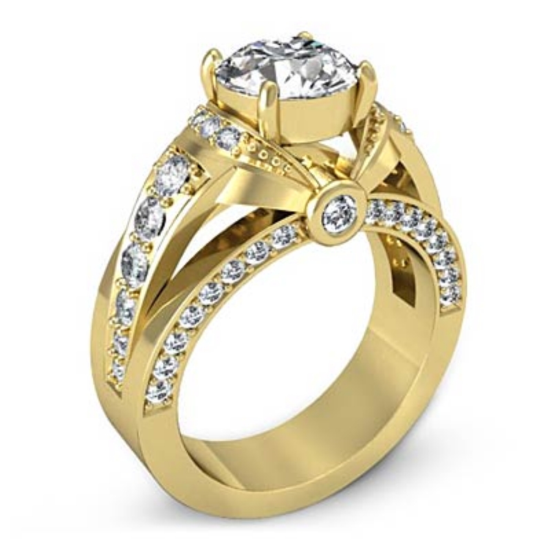 1.25Ct Round Diamond Engagement Ring 14k Yellow Gold Setting Pave Bezel.