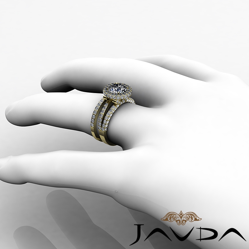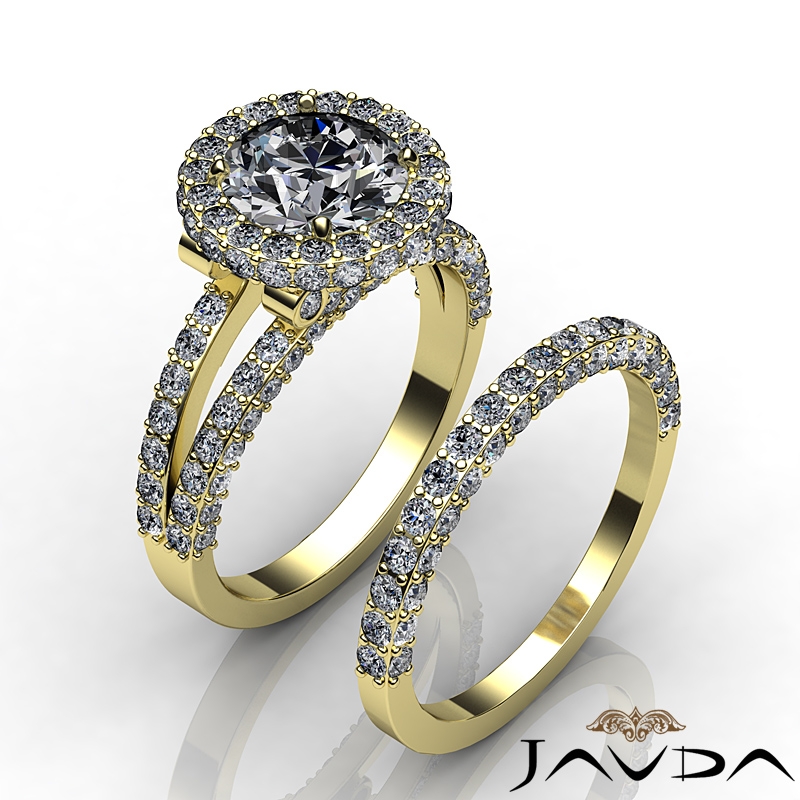 2.28Ct Pave Diamond Engagement Ring Bridal Set 18k Yellow Gold Round Semi Mount.