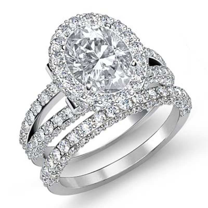 Split Shank Circa Halo Bridal style Engagement Ring, center is Oval shape Diamond Report by GIA, F Color & SI2 clarity, Made in Platinum 950 (3.5 ct. tw.)