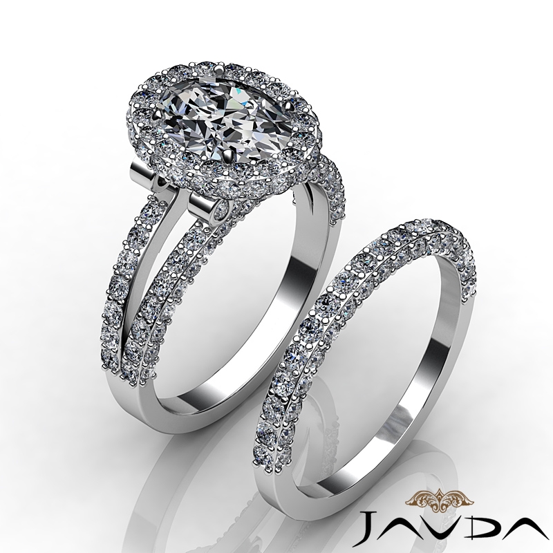 2.6Ct Halo Diamond Engagement Ring Oval Semi Mount Bridal Setting Platinum 950.